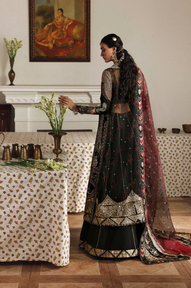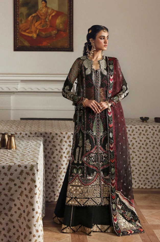 Black Organza Embroidered Front Left Panel B (1 Pc)