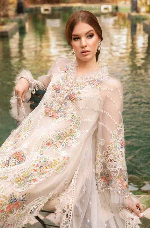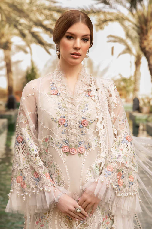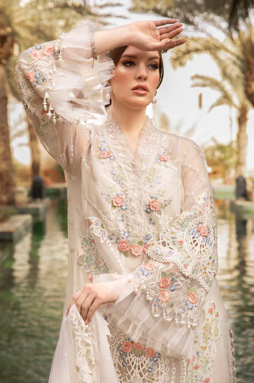Embroidered &3D flower Parl+leazr & cut Work