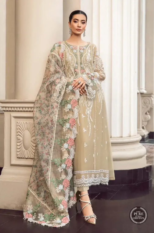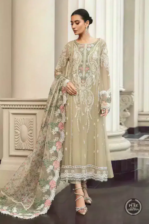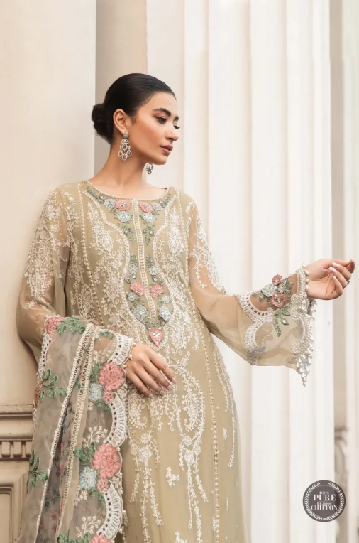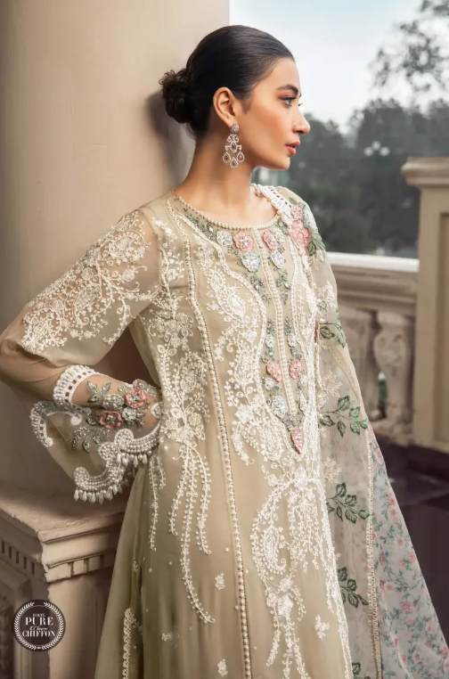 EMBROIDERED PURE CHIFFON FRONT WITH HAND