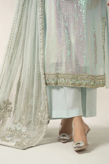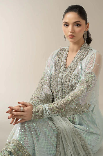EMBROIDERED & EMBLLISHED SLEEVE BORDER ORGANZA.