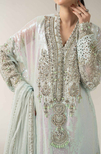 EMBROIDERED & EMBLLISHED FRONT NECKLINE ORGANZA.